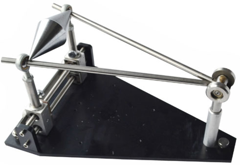 3、三維可調(diào)性強(qiáng):錐體兩軌道夾角可調(diào)、軌道平面傾角可調(diào),以及可選用各種不同尺寸(直徑和高度)的錐體做實(shí)驗(yàn);